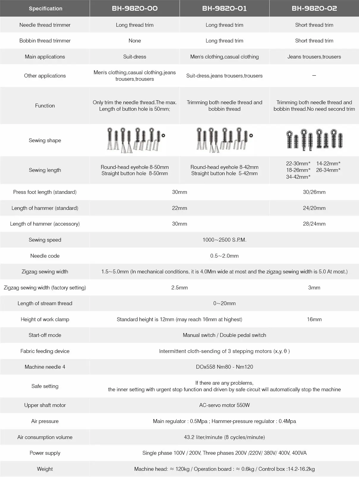 • Supports eyelet buttonholes ranging from 18–26 mm in length.
