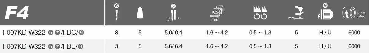 • FDE (Flattening type): 3-thread covering stitch with additional overlock seam guide included